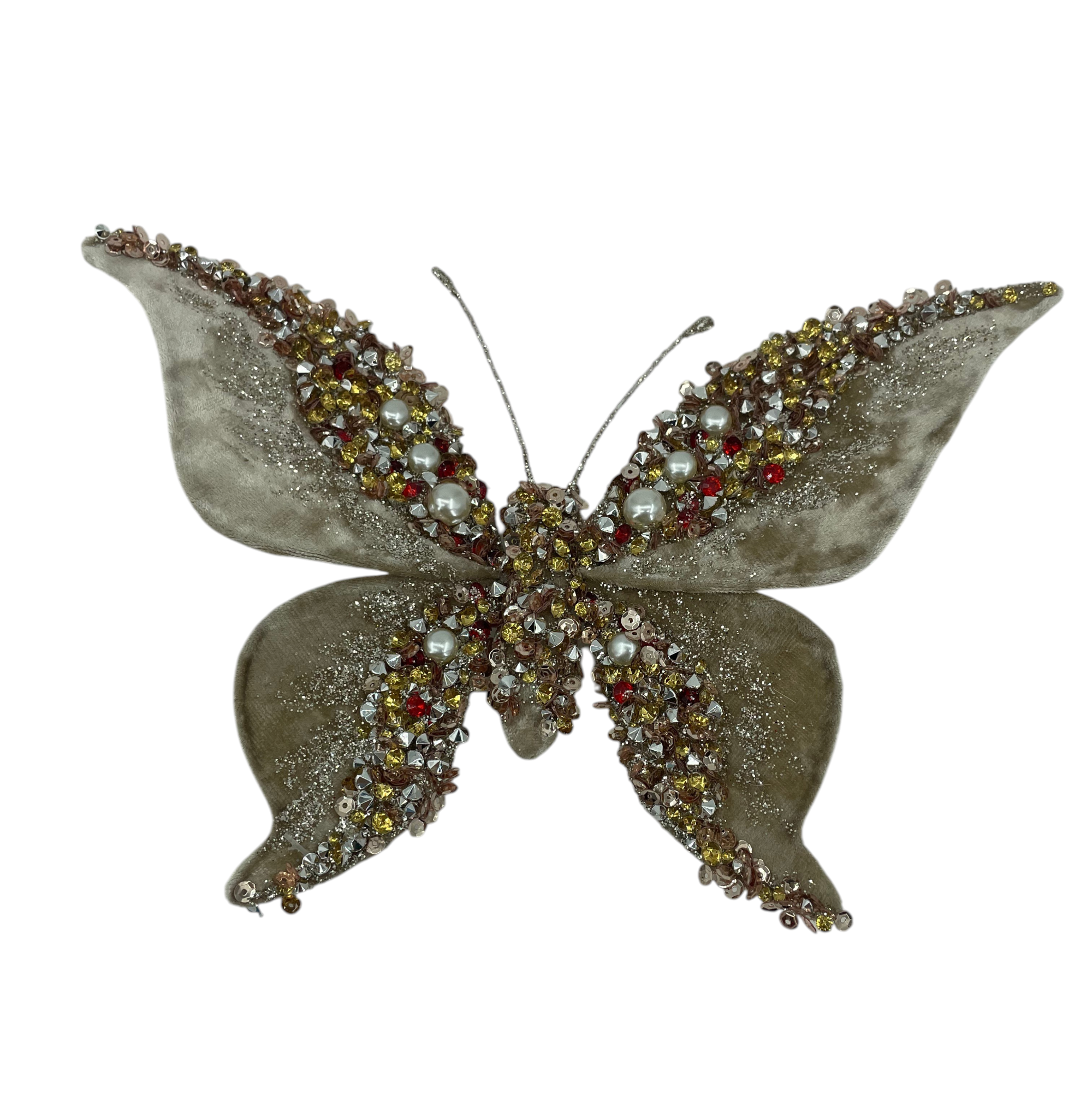 Understated and versatile, this 22cm butterfly clip is rendered in a refined taupe tone that brings quiet depth to festive styling. The neutral hue allows the sculpted wing detailing to take focus, with gentle contouring that creates dimension without relying on high contrast.