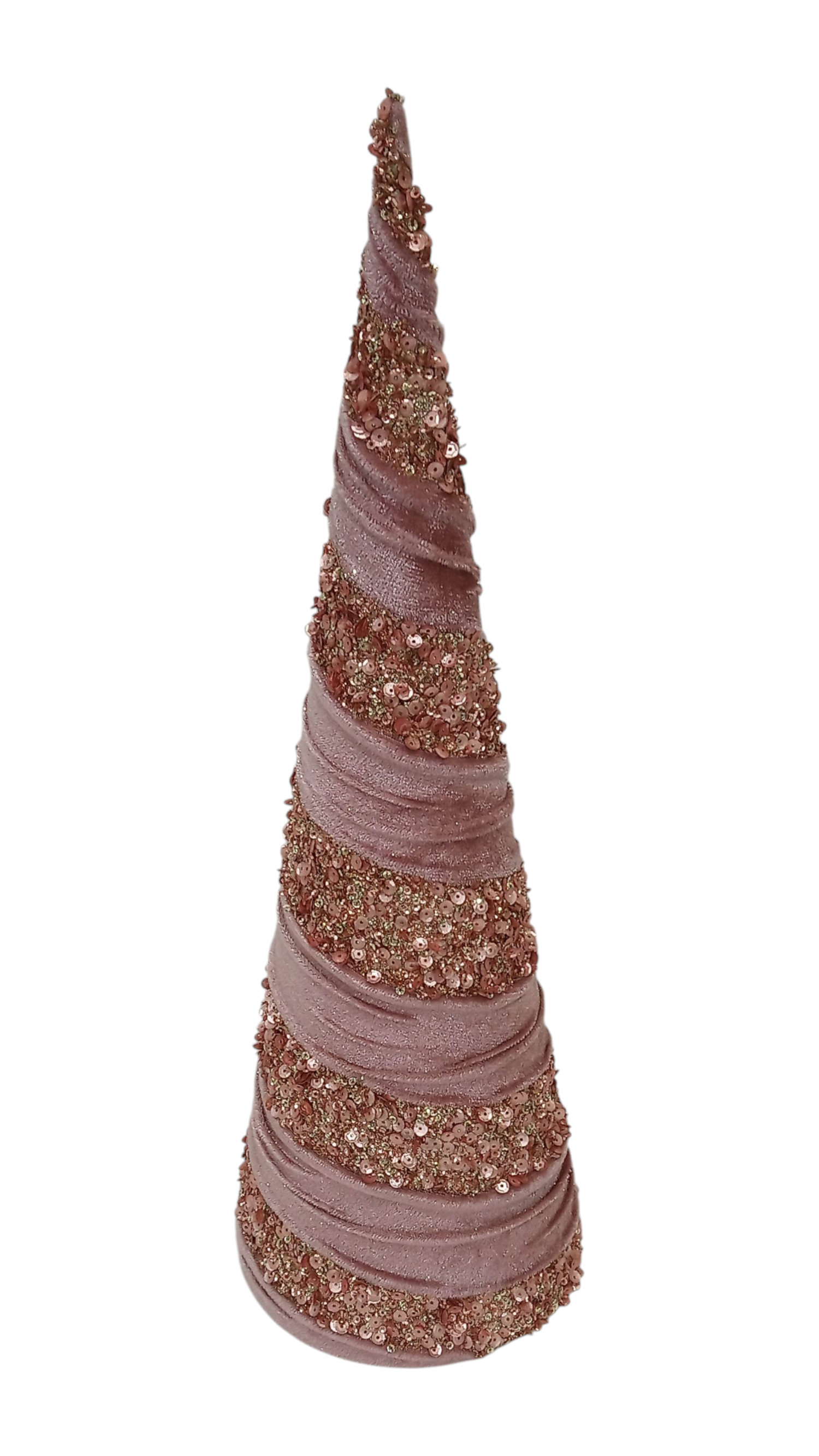 Soft in tone and refined in finish, this 45cm cone tree is wrapped in plush rose-hued velvet with a fine glitter overlay that introduces gentle luminosity. The blush tone feels contemporary and understated, offering a modern alternative to traditional festive colour while maintaining warmth.