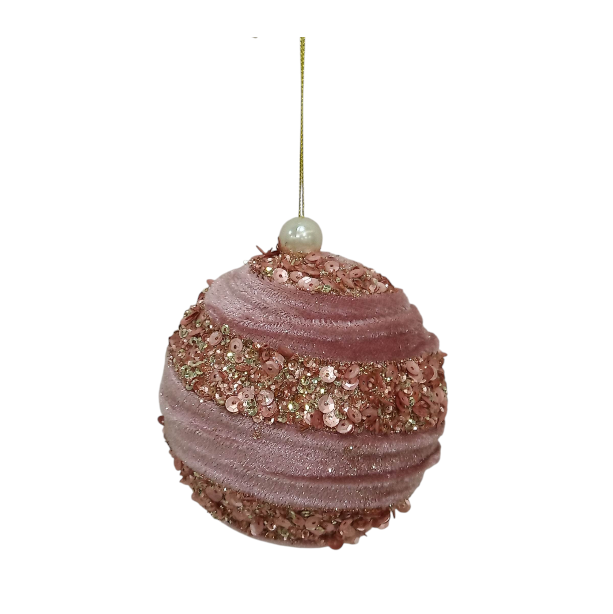 Soft in tone and tactile in finish, this 10cm velvet bauble introduces a muted pink accent that feels refined rather than playful. The plush surface absorbs light gently, giving the colour depth and a velvety richness that contrasts beautifully with glass and metallic ornaments.