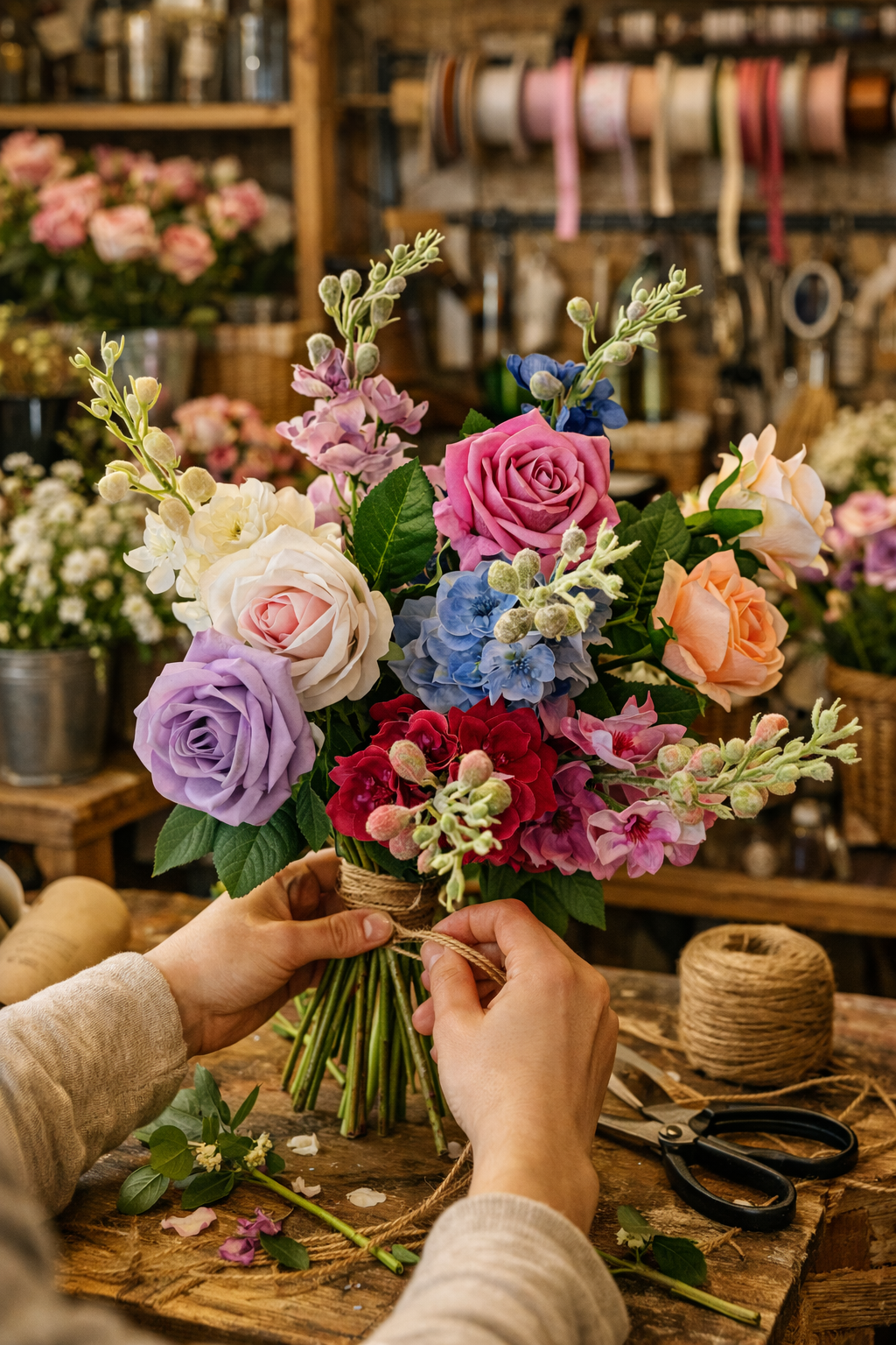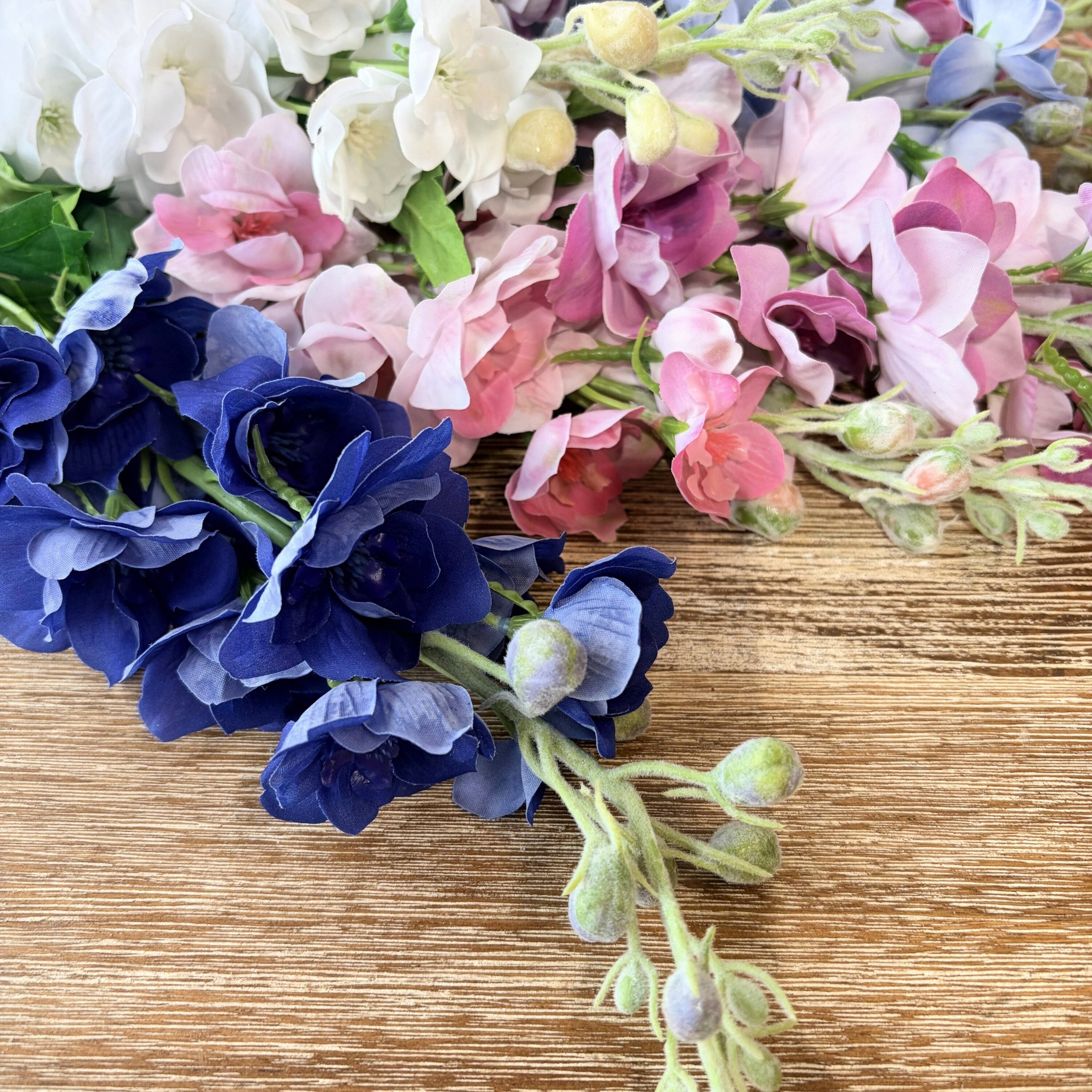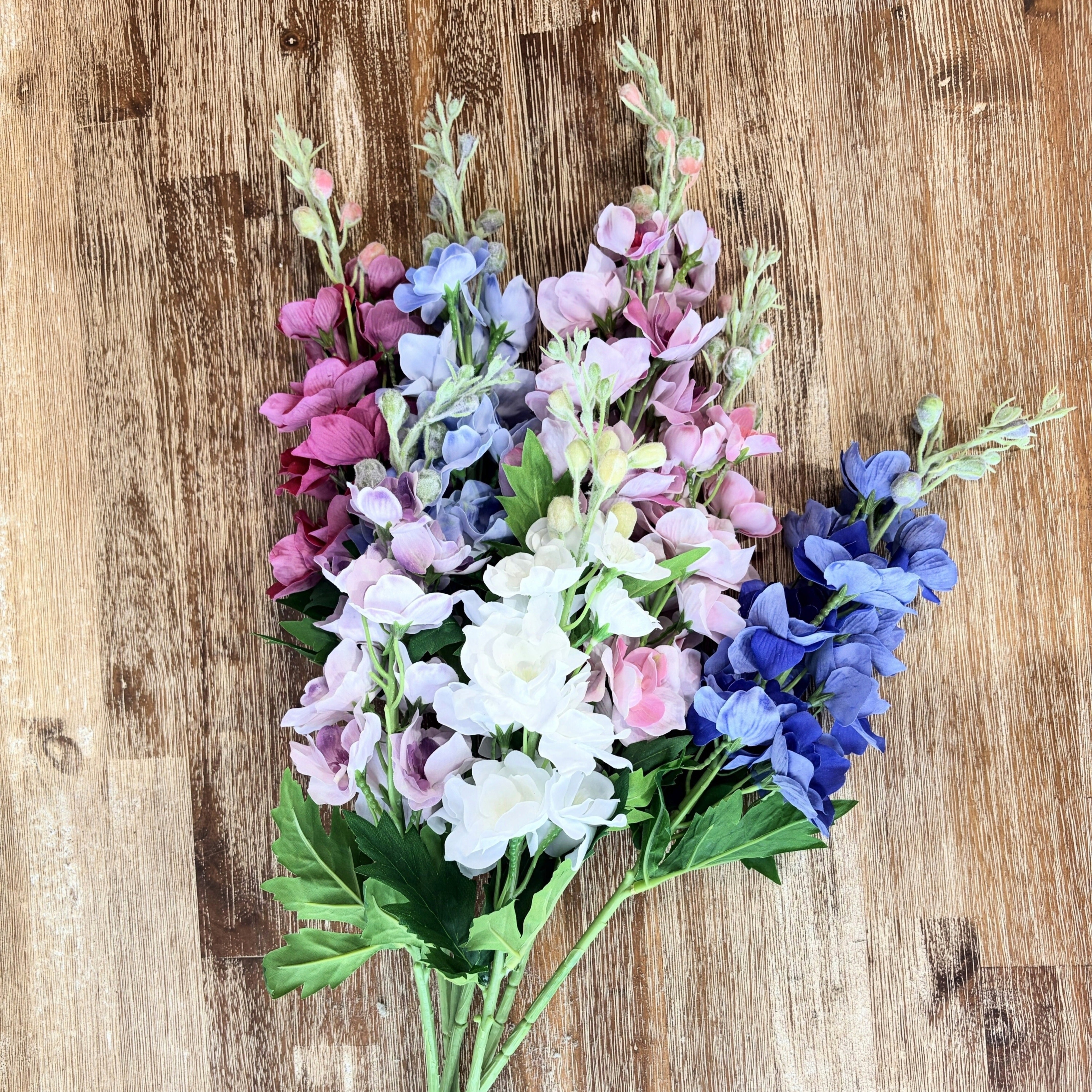 Designed with premium real-touch technology, each stem features layered blossoms with subtle tonal variation and a soft, natural feel. The structured vertical form makes delphiniums ideal for adding height to bouquets, event installations and retail displays.