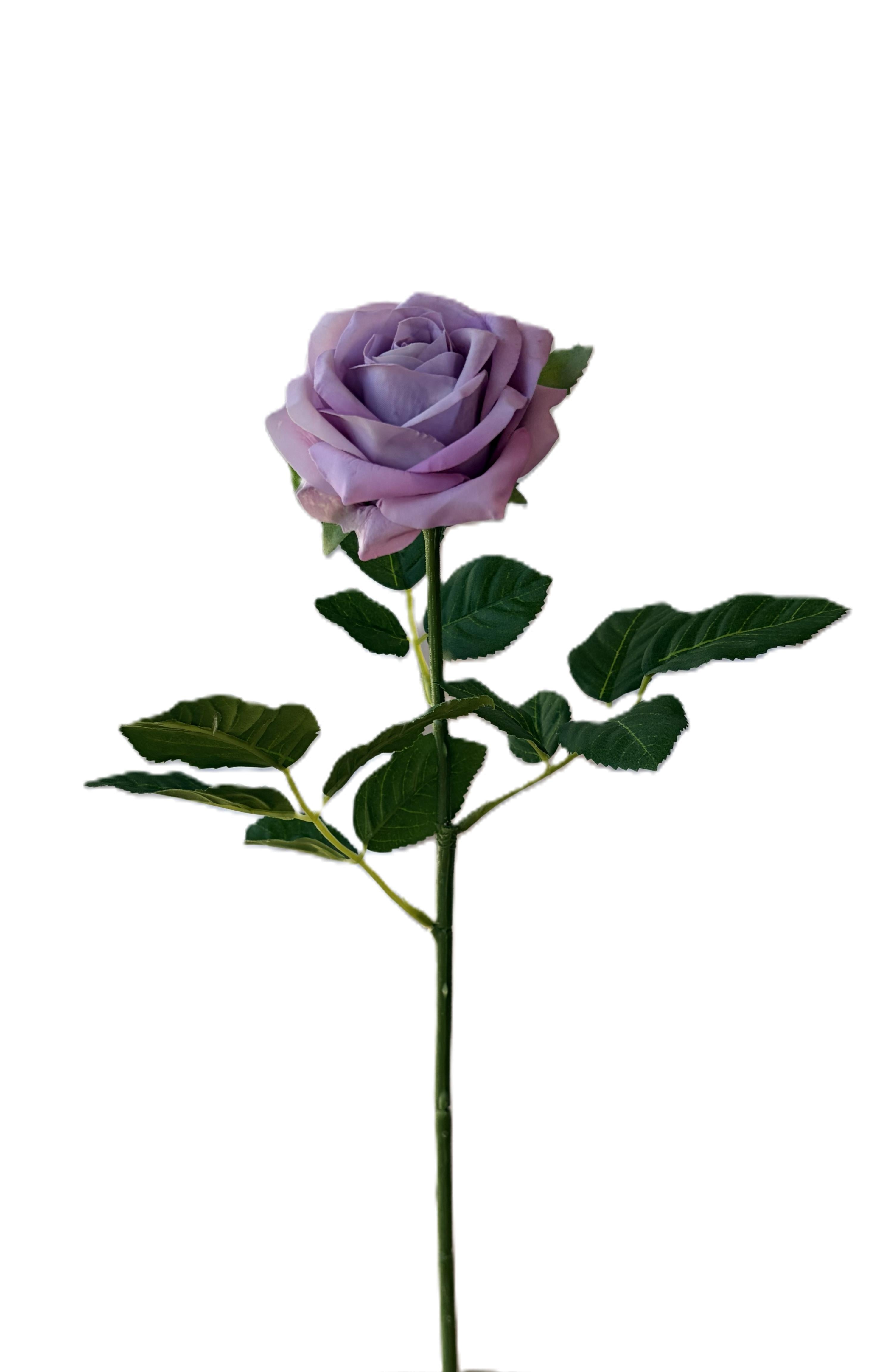 Crafted with lifelike petal texture and a flexible wired stem, this rose delivers premium presentation without maintenance. The gentle purple hue adds depth to neutral arrangements and pairs beautifully with whites, mauves and muted greens.