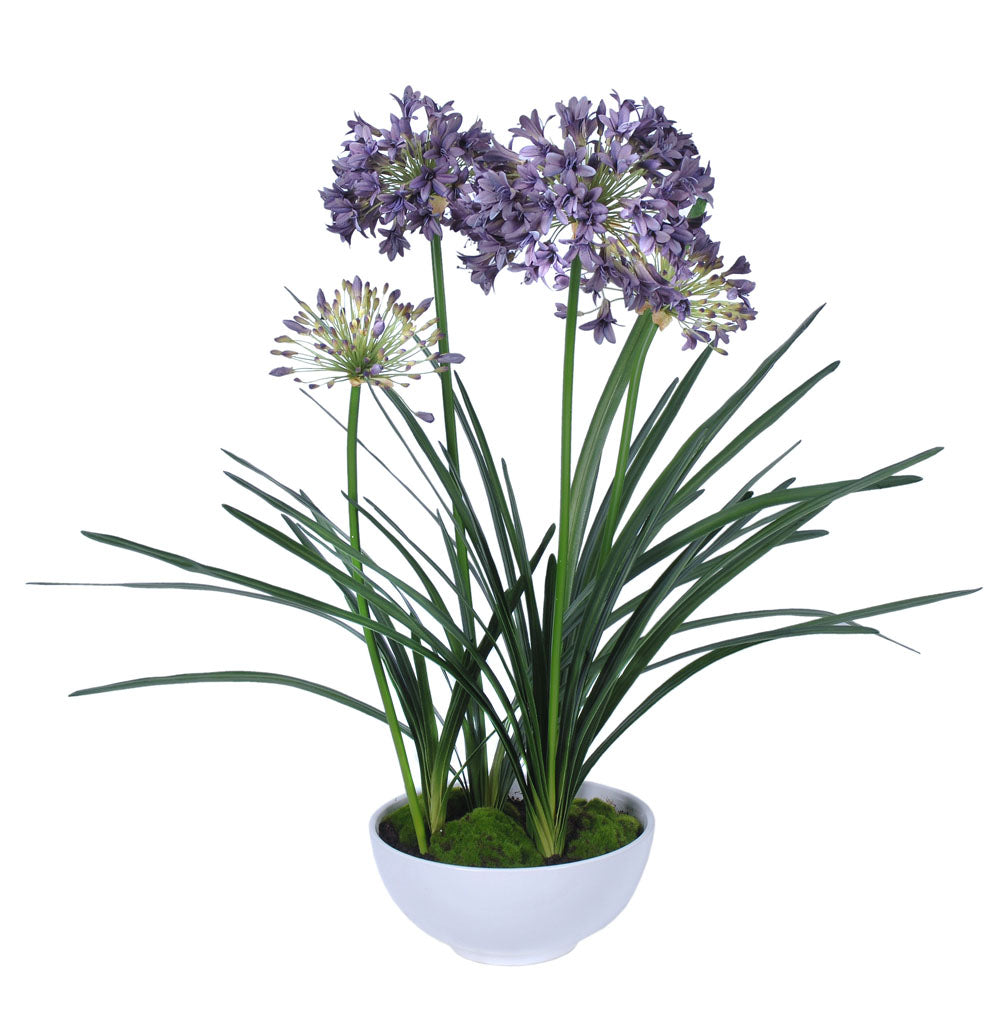 Elegant and refreshing, the Potted Agapanthus Blue 50x97cm captures the grace of a summer garden in bloom. Each tall, lifelike stem features clusters of soft blue petals, beautifully contrasted by lush green leaves — a striking display of colour and form that feels calm, balanced, and timeless.